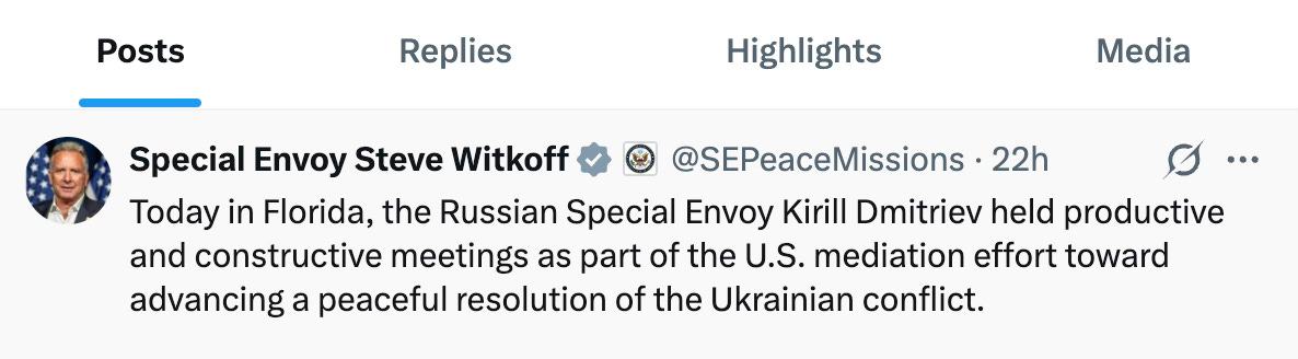 Dmitriev and Witkoff both expressed optimism on their X channel about their Miami meeting. How exactly it was constructive remains to be seen.