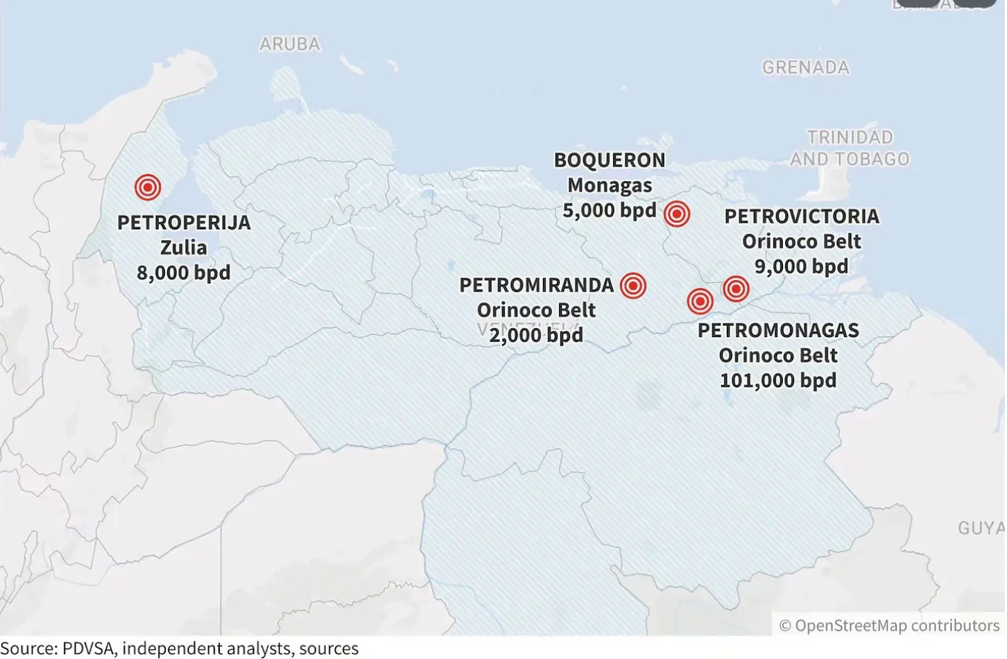 A low-hanging investment opportunity in the chaotic and uncertain Venezuelan market may be the five RosZarubezhneft-PDVSA crude oil production joint ventures in Venezuela. RosZarubezhneft’s estimated book value of these joint ventures is $4 billion, and in each case it holds an interest of 40% or less. However, given the current sanctions regime due to Russian and Venezuelan ownership, and the poor state of the facilities, the effective value is zero. This means that, given the right circumstances – the lifting of sanctions based on a change of ownership and the right financing structure – these assets could be acquired by a Western bank or operator at a fraction of their value compared with their equivalent in a normal market environment. Nevertheless, the Venezuelan country risk factor remains high due to short- and medium-term government uncertainty.
